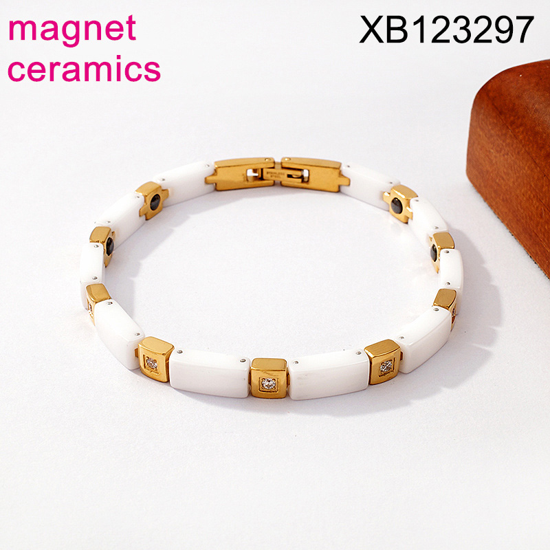 Home > Level B Stainless Steel New Trendy Man Jewelry Golden Magnet Stone White Ceramics Bracelet