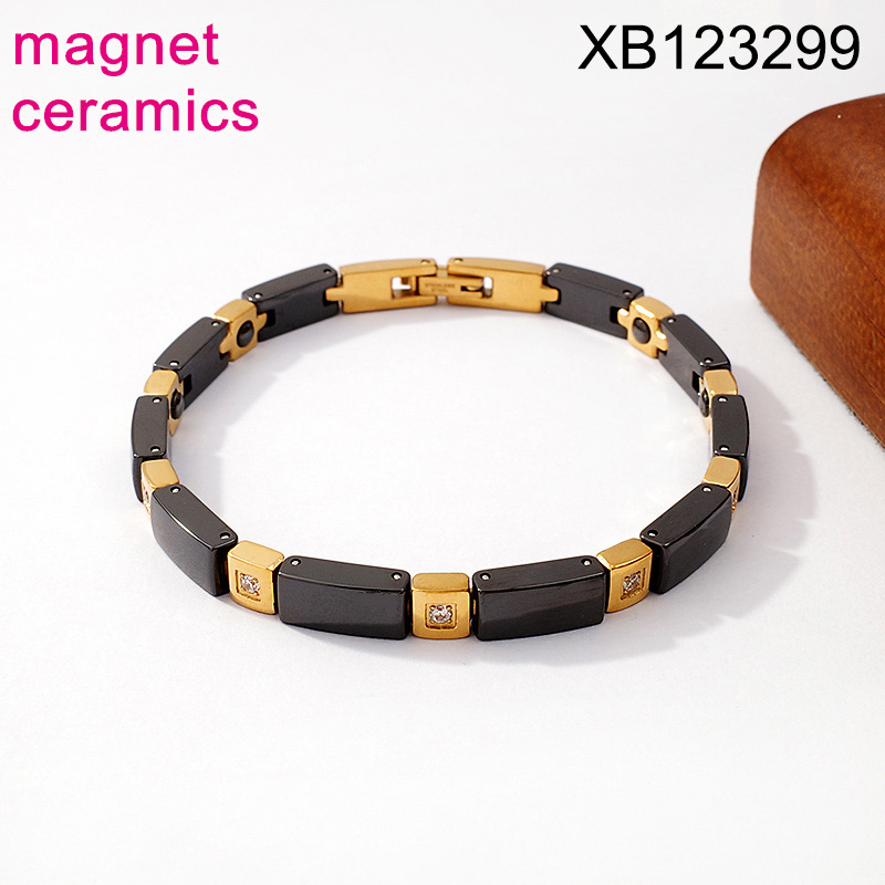 Level B Stainless Steel New Trendy Man Jewelry Golden Magnet Stone Black Ceramics Bracelet