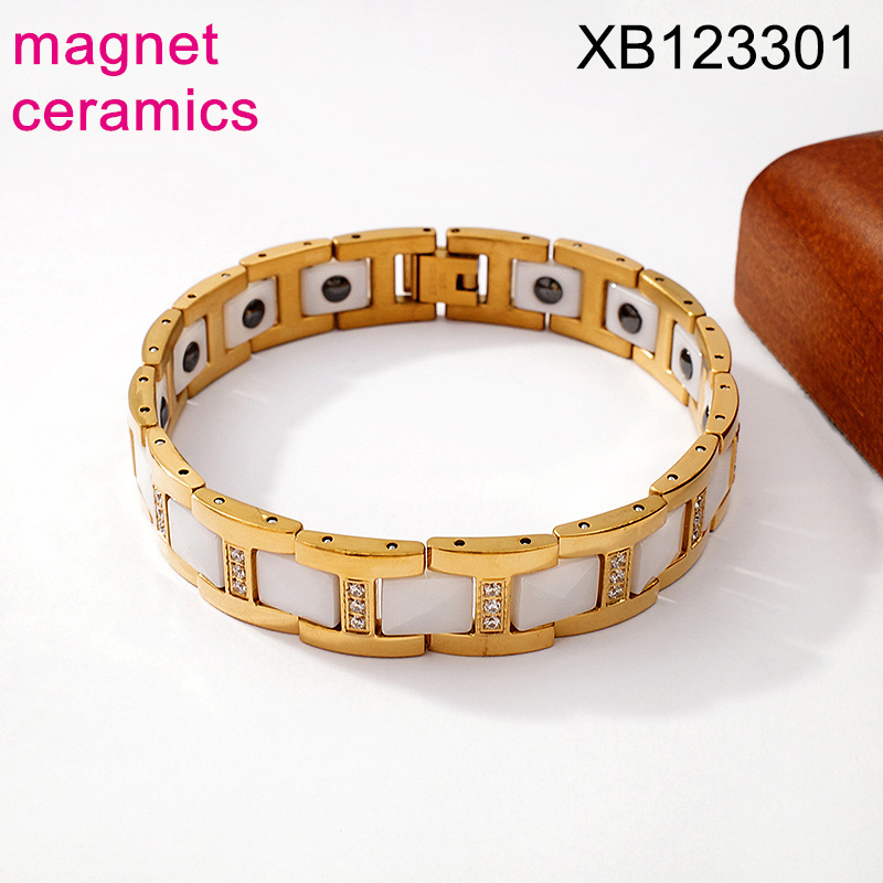 Level B Stainless Steel New Trendy Man Jewelry Golden Magnet Stone White Ceramics Bracelet