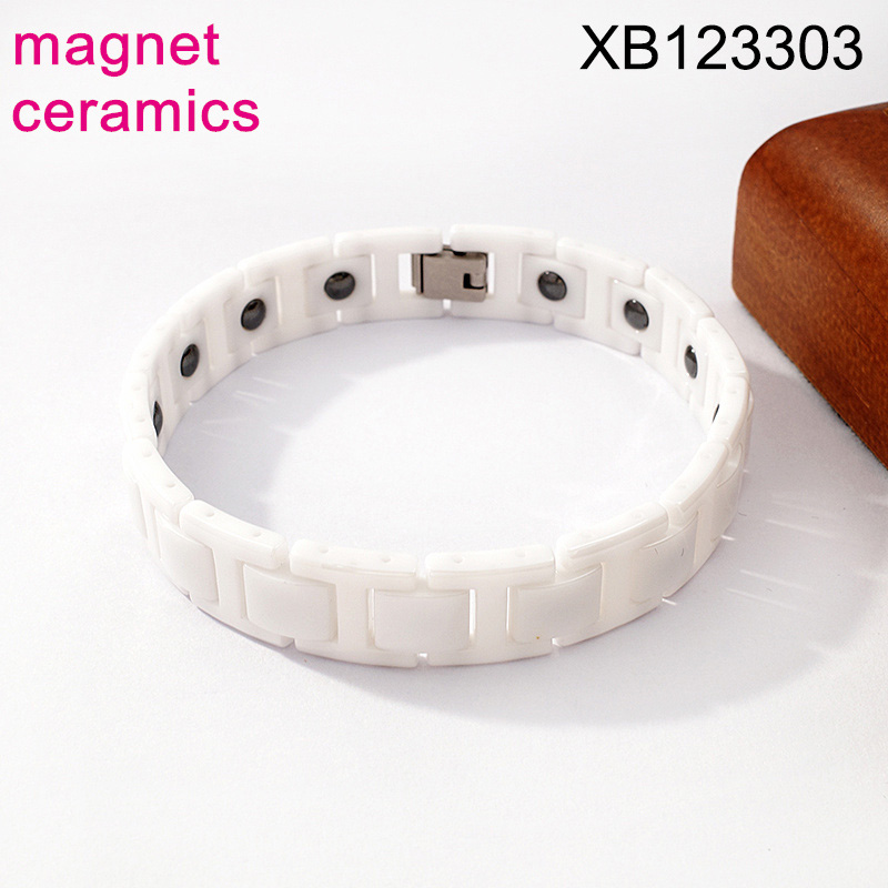 Level B Stainless Steel New Trendy Man Jewelry Steel color Magnet Stone White Ceramics Bracelet