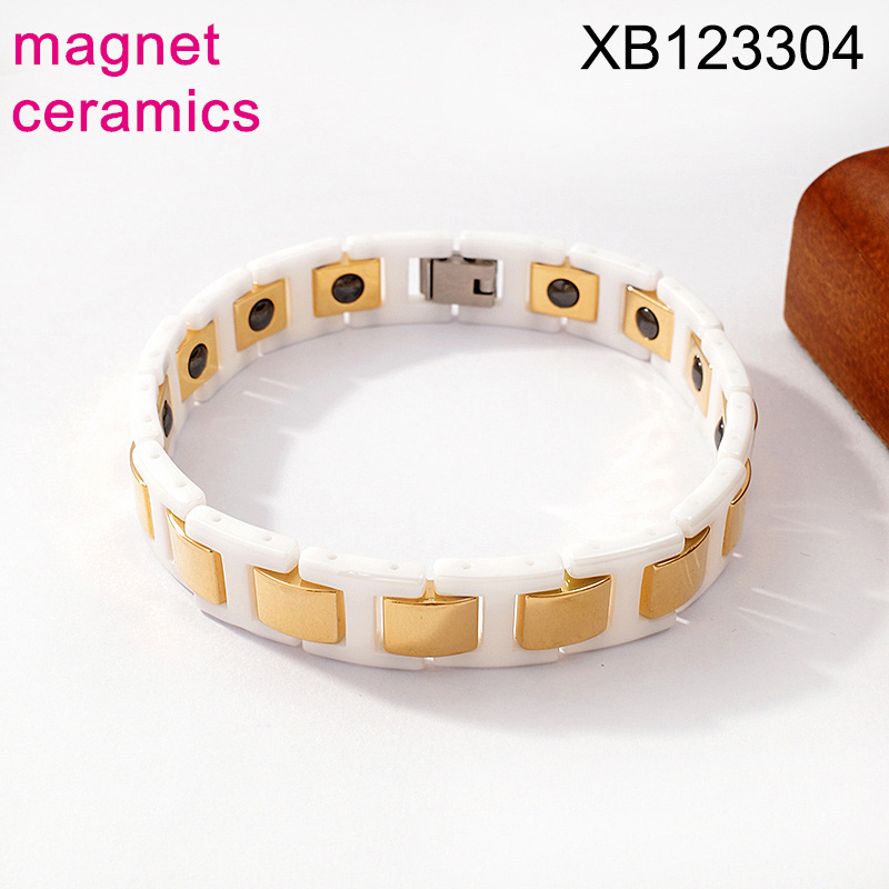 Level B Stainless Steel New Trendy Man Jewelry Golden Magnet Stone White Ceramics Bracelet