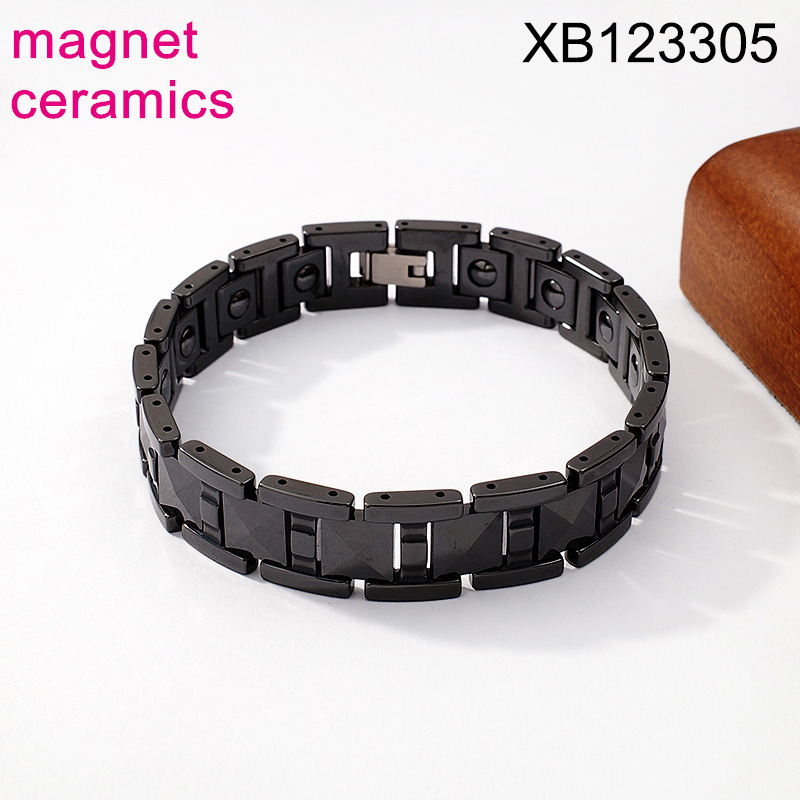 Level B Stainless Steel New Trendy Man Jewelry Steel color Magnet Stone Black Ceramics Bracelet