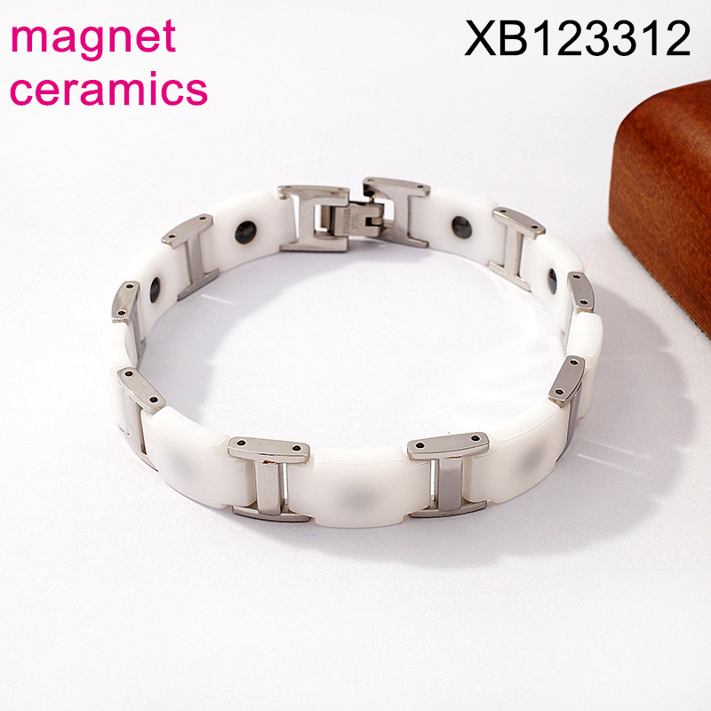 Level B Stainless Steel New Trendy Man Jewelry Steel color Magnet Stone White Ceramics Bracelet
