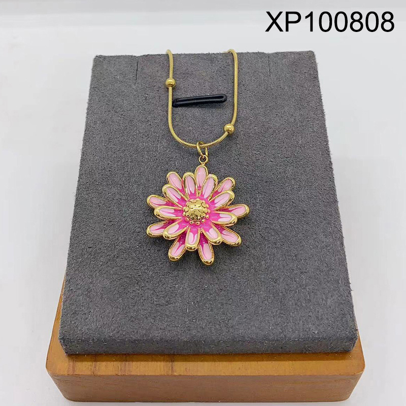 Level B Stainless Steel New Trendy Women Jewelry Drip Oil/Enamel Flower Golden Pendant