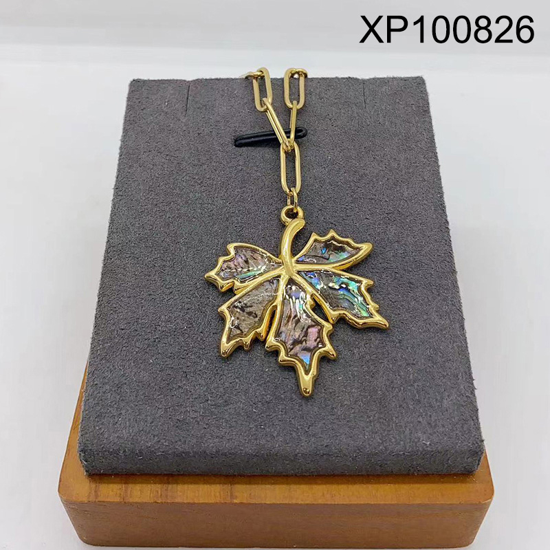 Level B Stainless Steel New Trendy Women Jewelry Maple Leaf Golden Pendant