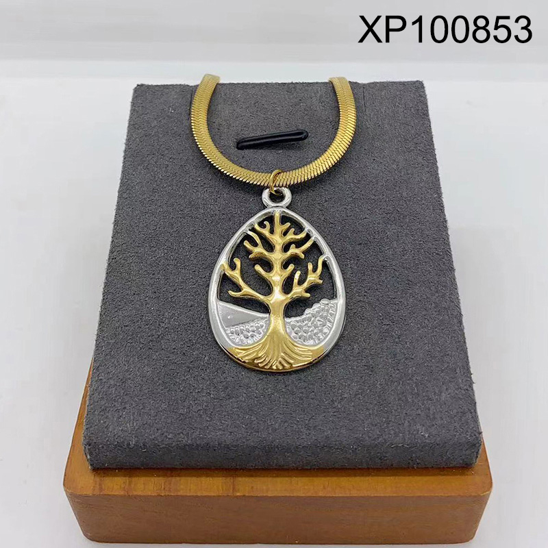 Level B Stainless Steel New Trendy Women Jewelry Water Drip Tree Two Tone Pendant