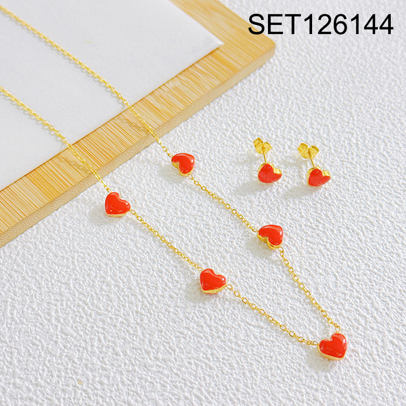 Level B Stainless Steel New Trendy Women Jewelry Drip Oil/Enamel Heart Golden SET