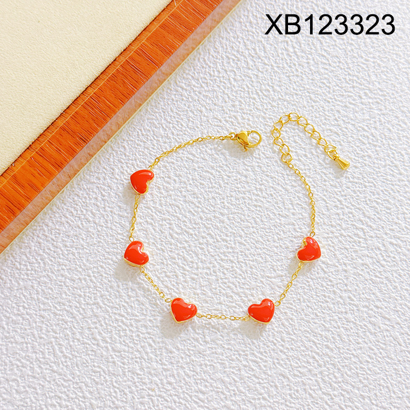 Level B Stainless Steel New Trendy Women Jewelry Drip Oil/Enamel Heart Golden Bracelet
