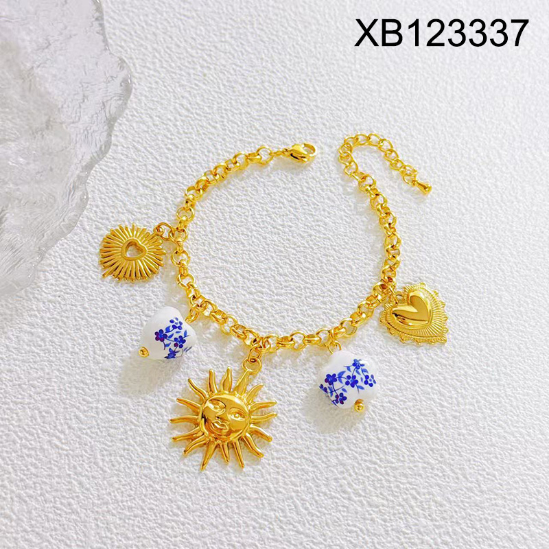 Level B Stainless Steel New Trendy Women Jewelry Sun Flower Heart Golden Bracelet
