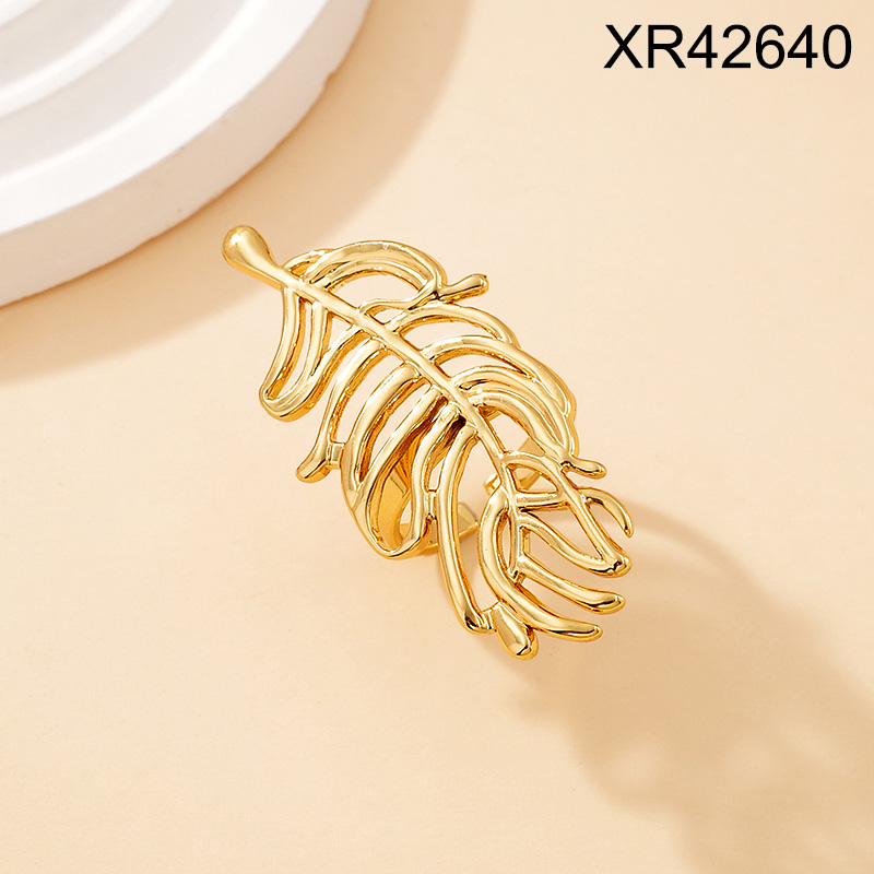 Level B Stainless Steel New Trendy Women Jewelry Leaf Golden Open Rings;Ring size can be adjusted freely