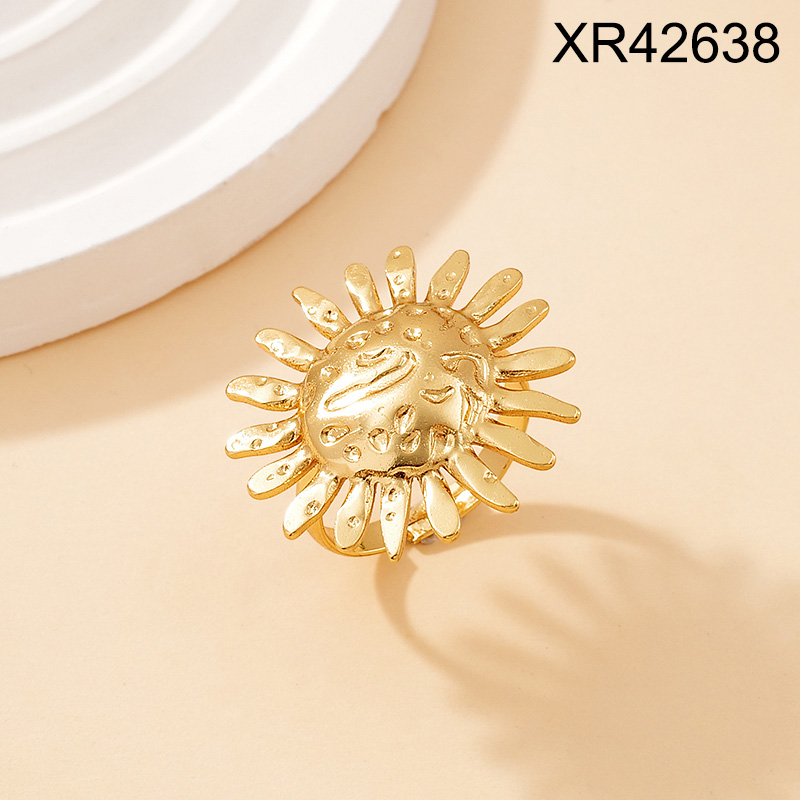 Level B Stainless Steel New Trendy Women Jewelry Flower Golden Open Rings;Ring size can be adjusted freely