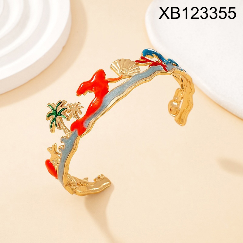 Home > Level B Stainless Steel New Trendy Women Jewelry Summer beach Tree Mermaid Animal Shell Golden Open Bangle;Bangle size can be adjusted freely