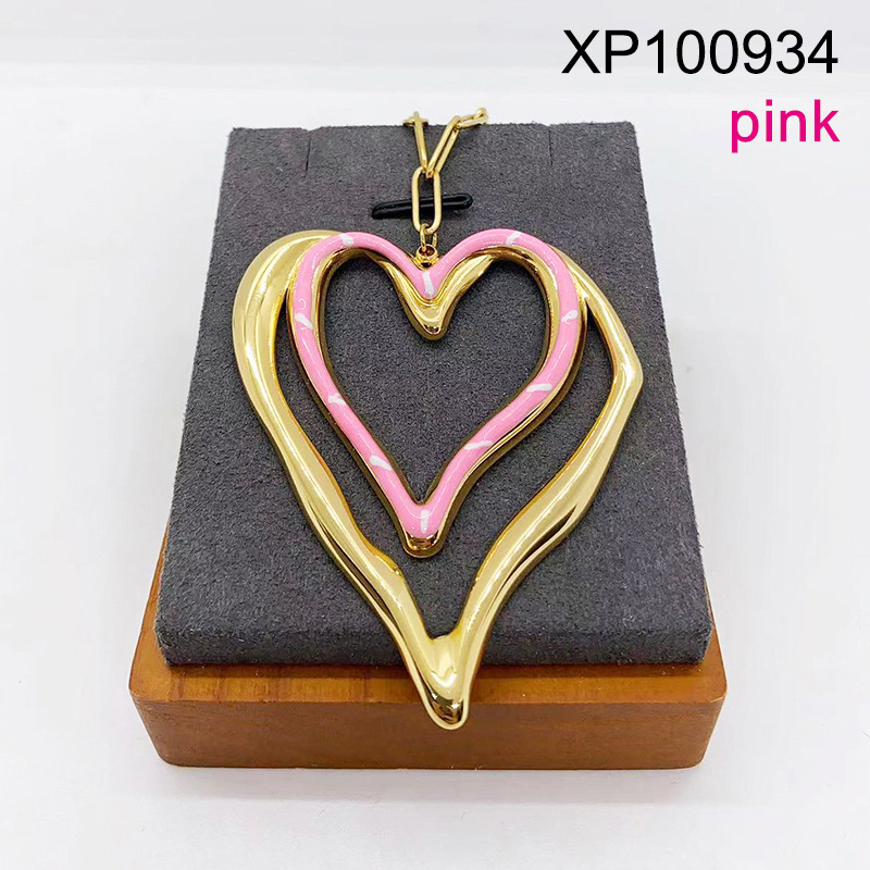 Level B Stainless Steel New Trendy Women Jewelry Drip Oil/Enamel Pink Heart Golden Pendant