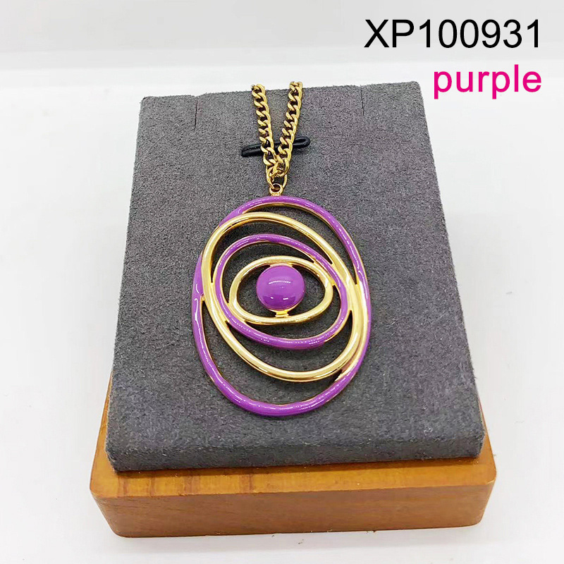 Level B Stainless Steel New Trendy Women Jewelry Drip Oil/Enamel Purple Oval Golden Pendant
