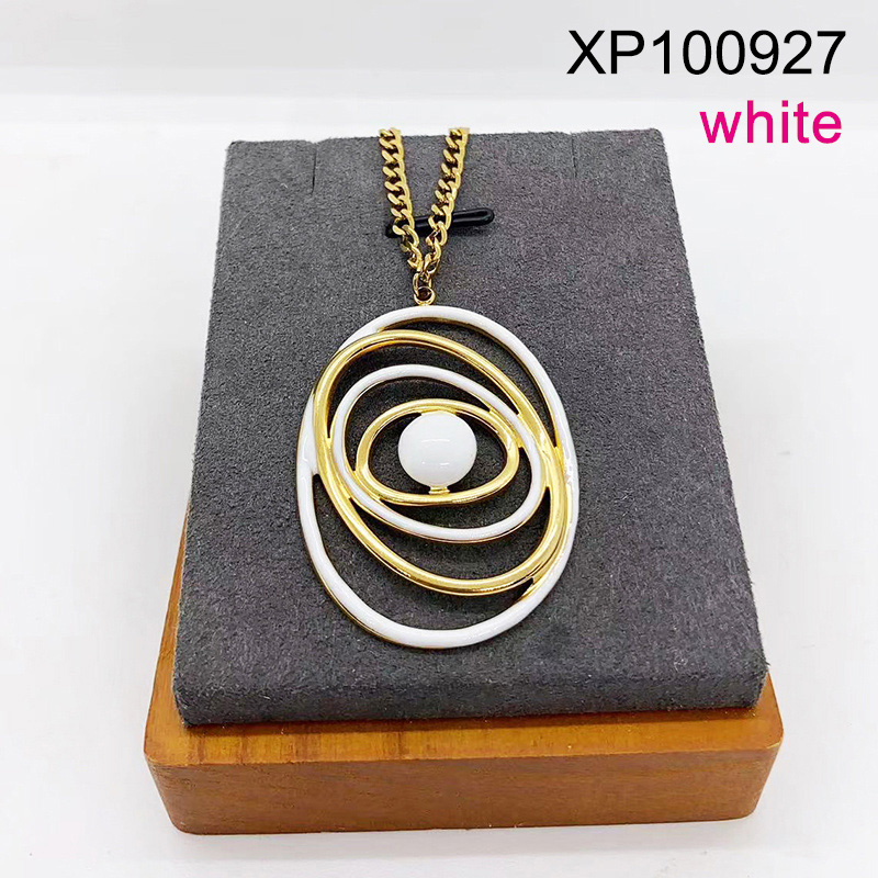 Home > Level B Stainless Steel New Trendy Women Jewelry Drip Oil/Enamel White Oval Golden Pendant