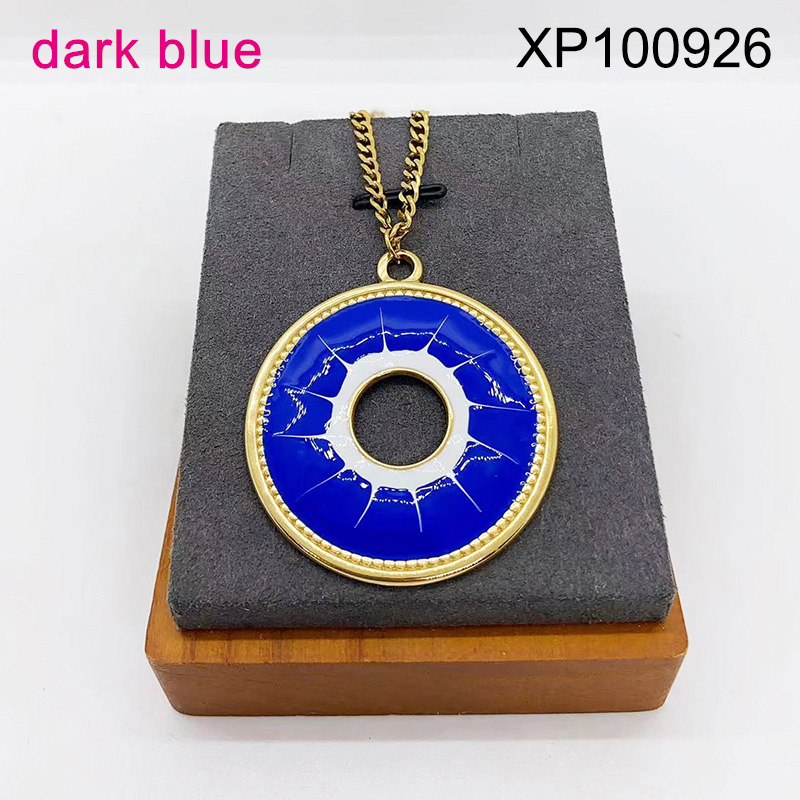 Home > Level B Stainless Steel New Trendy Women Jewelry Drip Oil/Enamel Dark blue Round Golden Pendant