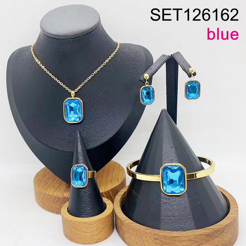 Level B Stainless Steel New Trendy Women Jewelry Polygon Blue Glass Golden 4pcs SET
