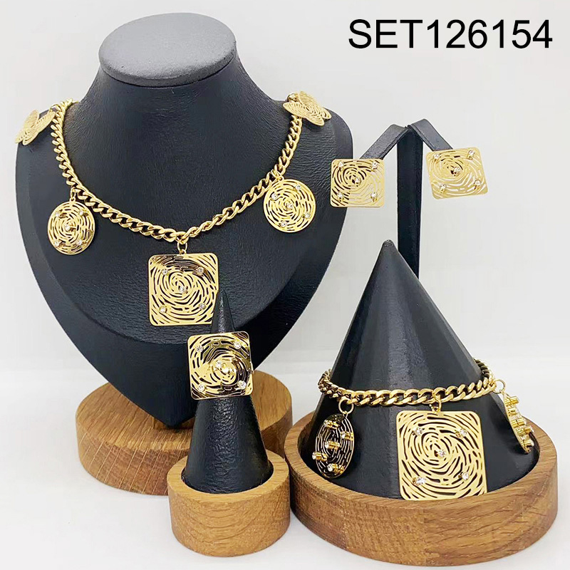 Level B Stainless Steel New Trendy Women Jewelry Square Golden 4pcs SET