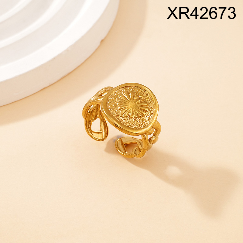 Level C Stainless Steel New Trendy Women Jewelry Round Heart Golden Open Rings;Ring size can be adjusted freely
