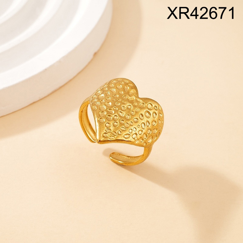 Level C Stainless Steel New Trendy Women Jewelry Heart Golden Open Rings;Ring size can be adjusted freely