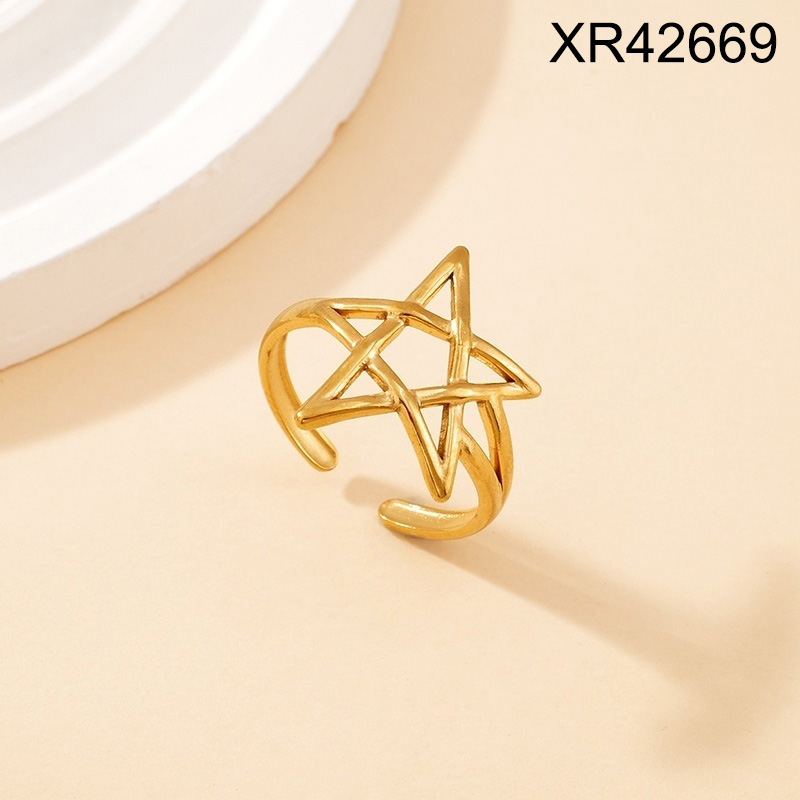 Level C Stainless Steel New Trendy Women Jewelry Star Golden Open Rings;Ring size can be adjusted freely