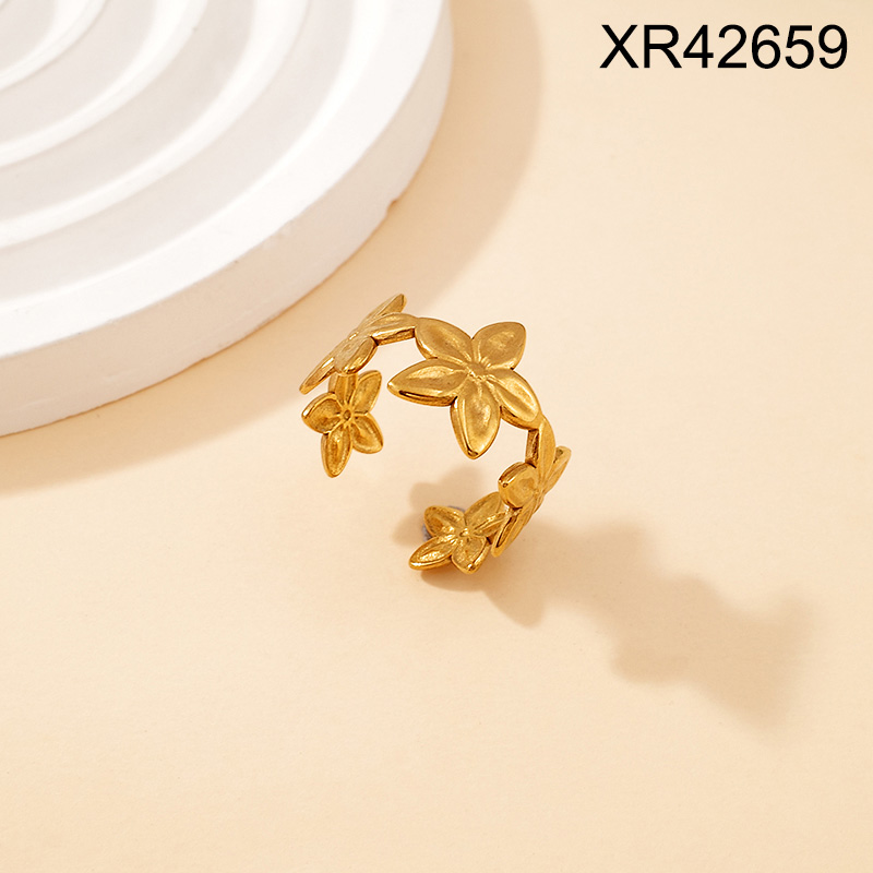 Level C Stainless Steel New Trendy Women Jewelry Flower Golden Open Rings;Ring size can be adjusted freely