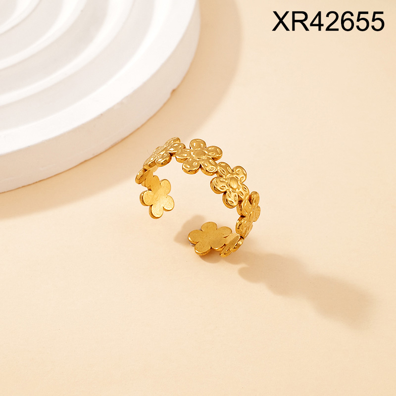 Level C Stainless Steel New Trendy Women Jewelry Flower Golden Open Rings;Ring size can be adjusted freely
