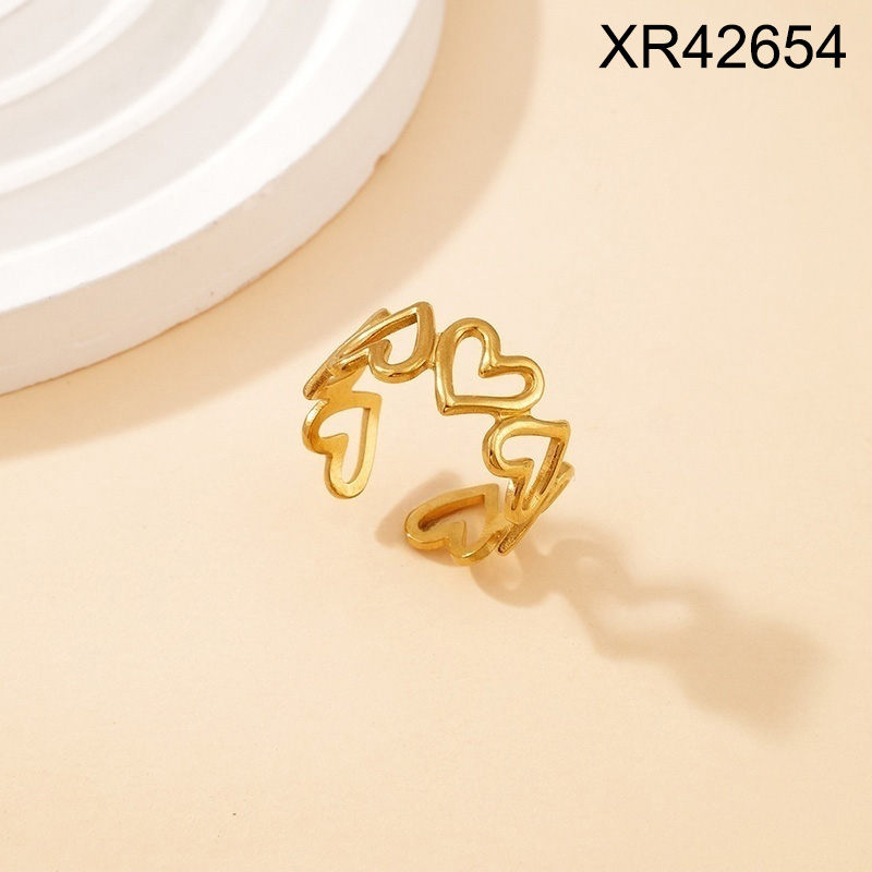 Level C Stainless Steel New Trendy Women Jewelry Heart Golden Open Rings;Ring size can be adjusted freely
