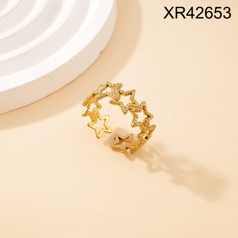 Level C Stainless Steel New Trendy Women Jewelry Star Golden Open Rings;Ring size can be adjusted freely
