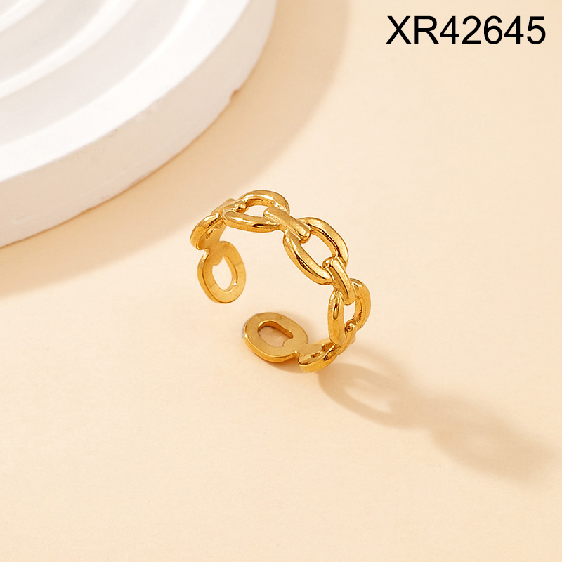 Level C Stainless Steel New Trendy Women Jewelry Oval Golden Open Rings;Ring size can be adjusted freely