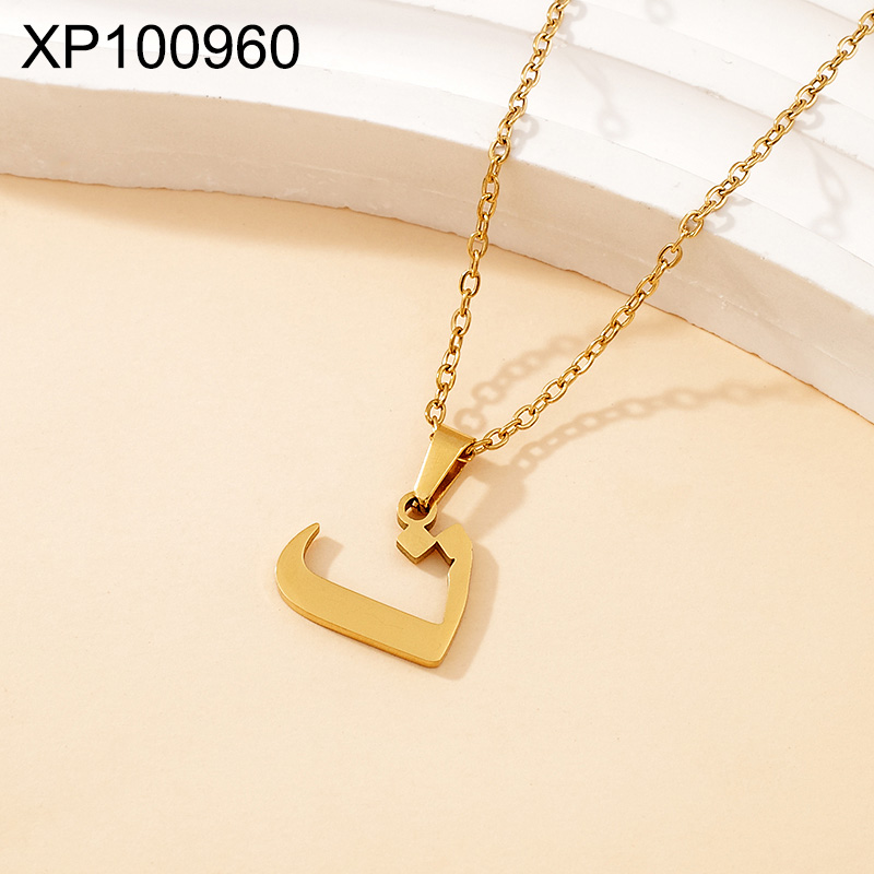 Home > Level C Stainless Steel New Trendy Women Jewelry Arabic Alphabet Golden Pendant