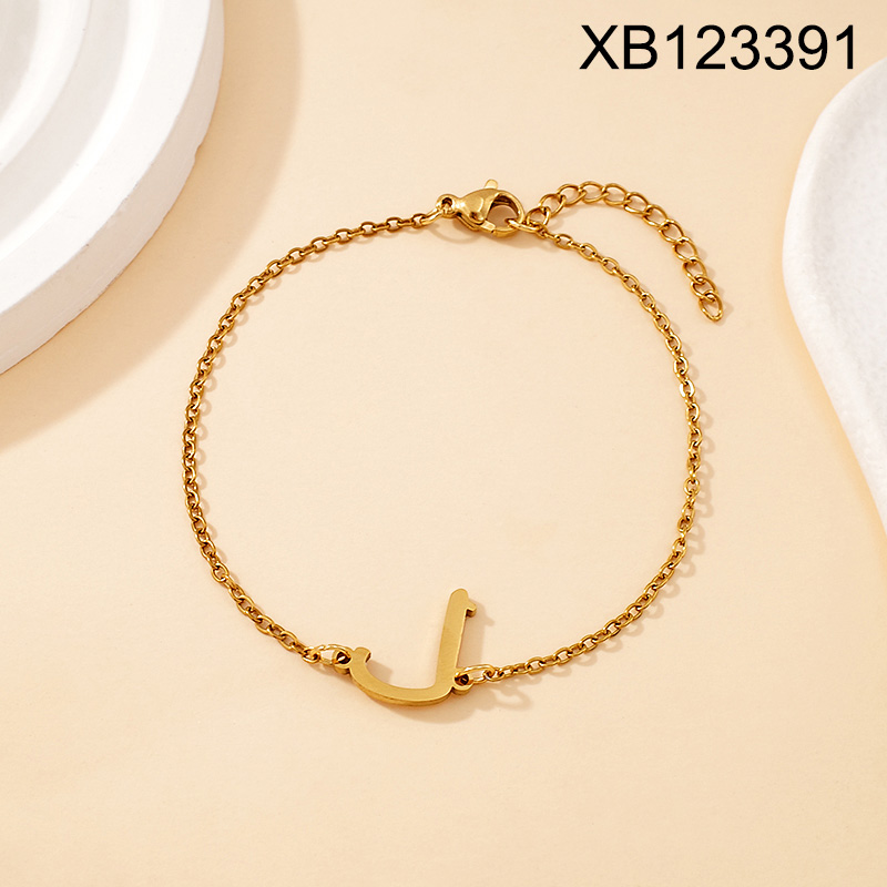 Home > Level C Stainless Steel New Trendy Women Jewelry Arabic Alphabet Golden Bracelet