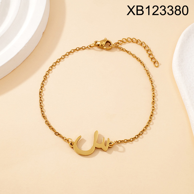 Home > Level C Stainless Steel New Trendy Women Jewelry Arabic Alphabet Golden Bracelet