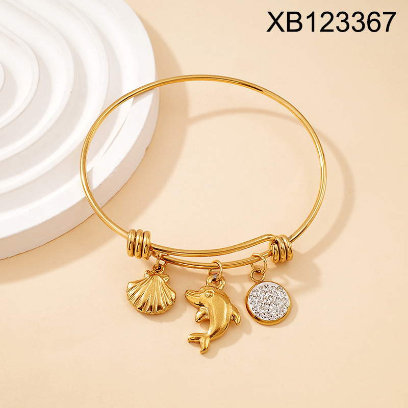 Home > Level B Stainless Steel New Trendy Women Jewelry Summer beach Animal Dolphin Shell Round Golden Bangle