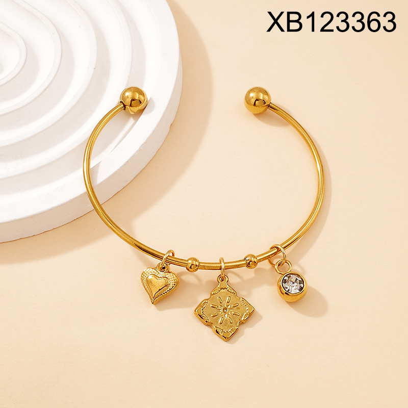 Level B Stainless Steel New Trendy Women Jewelry Square Heart Golden Open Bangle;Bangle size can be adjusted freely