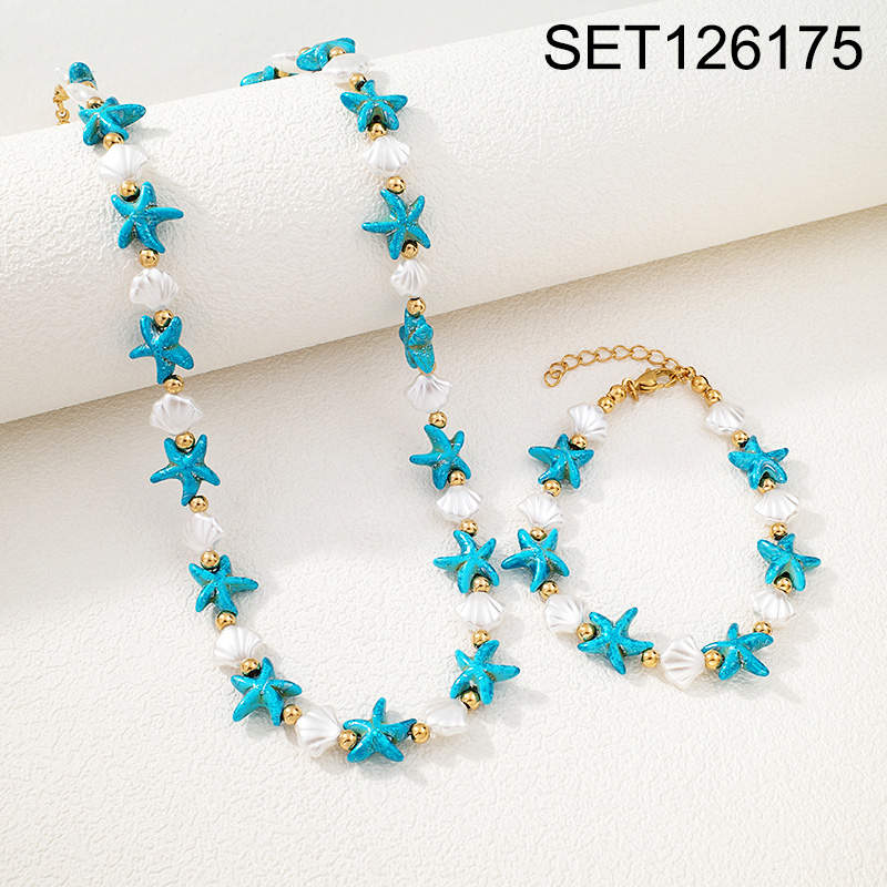 Level B Stainless Steel New Trendy Women Jewelry Summer beach Animal Starfish Shell Golden Chain SET