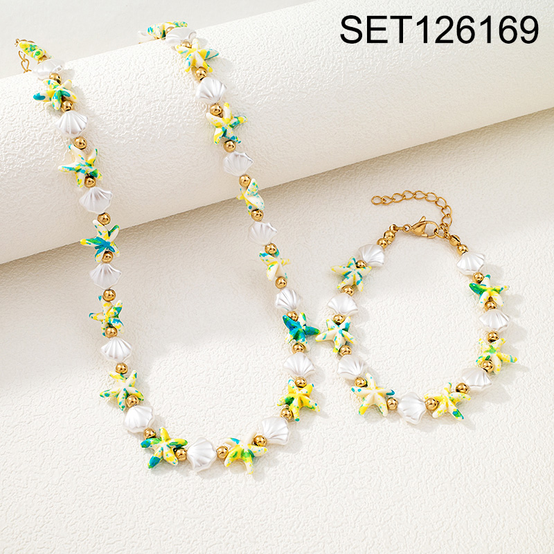 Level B Stainless Steel New Trendy Women Jewelry Summer beach Animal Starfish Shell Golden Chain SET