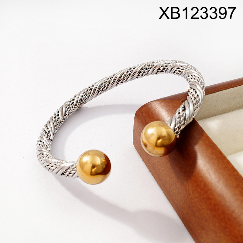 Level B Stainless Steel New Trendy Women Jewelry Two Tone Wire Open Bangle;Bangle size can be adjusted freely