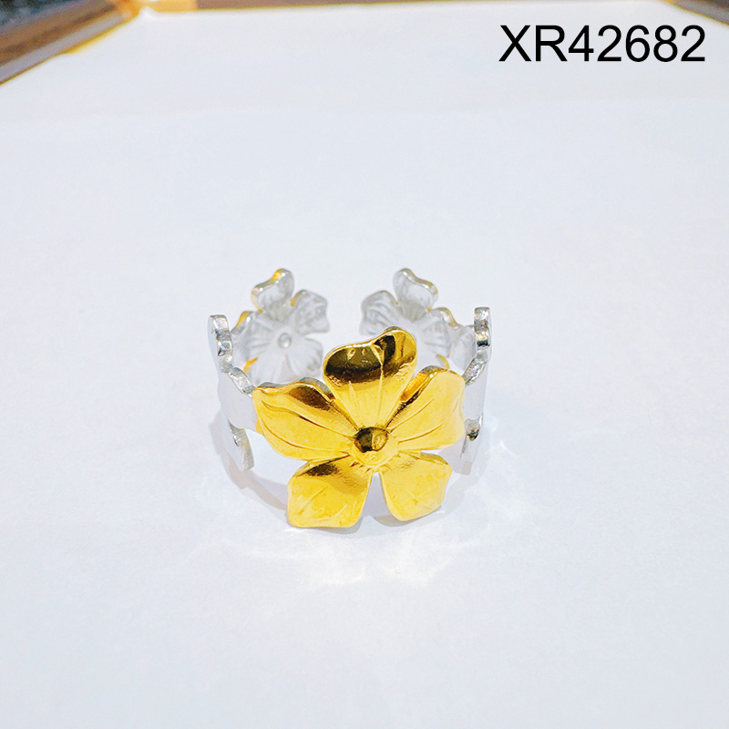 Level B Stainless Steel New Trendy Women Jewelry Flower Two Tone Open Rings;Ring size can be adjusted freely