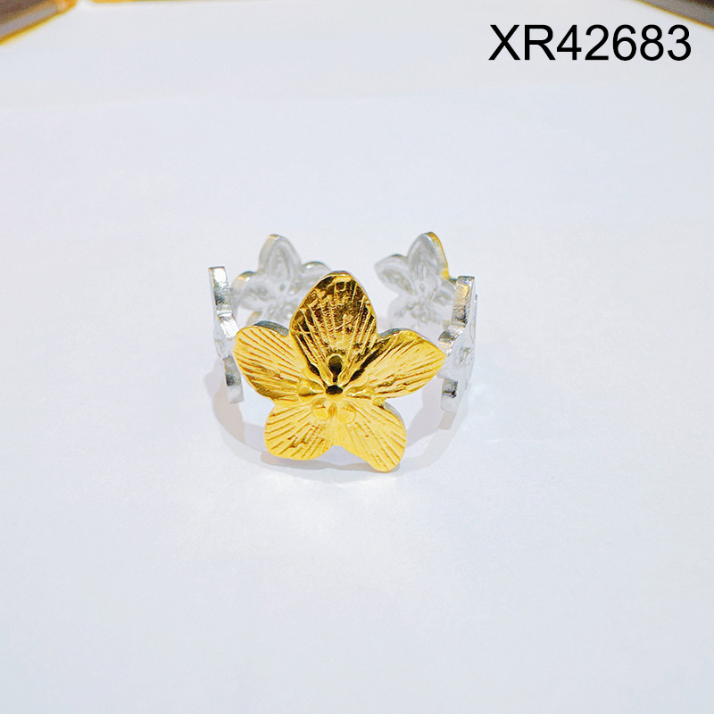 Home > Level B Stainless Steel New Trendy Women Jewelry Flower Two Tone Open Rings;Ring size can be adjusted freely