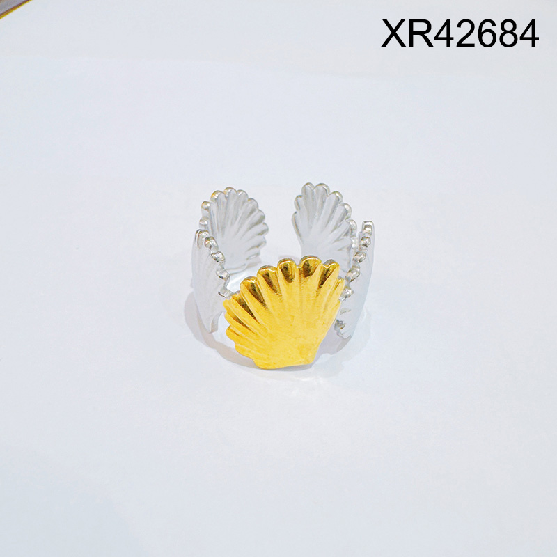 Level B Stainless Steel New Trendy Women Jewelry Summer beach Animal Shell Two Tone Open Rings;Ring size can be adjusted freely