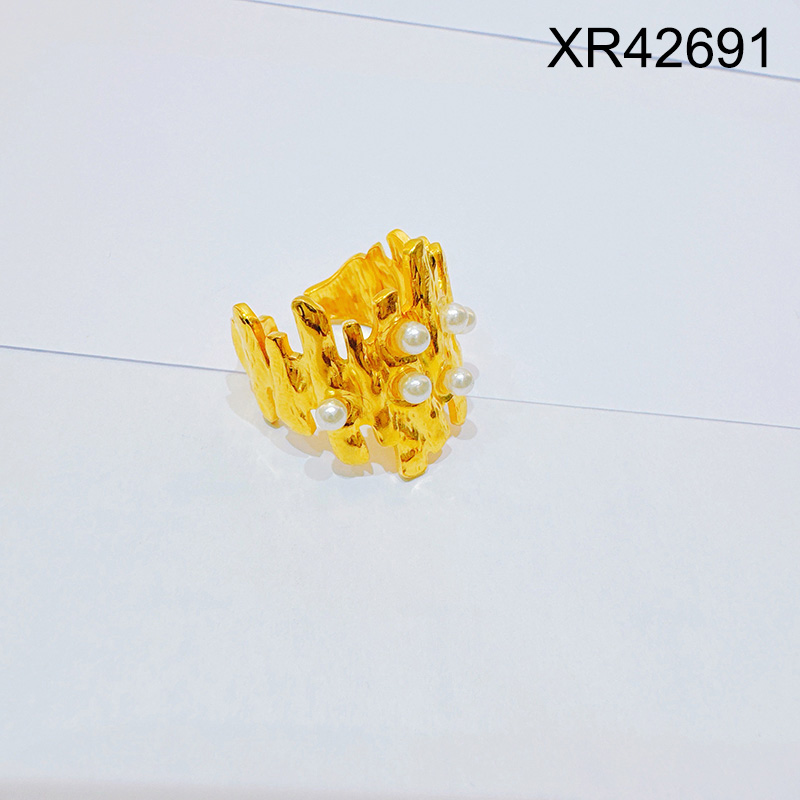 Home > Level B Stainless Steel New Trendy Women Jewelry Pearl Style/Plastic Beads Golden Open Rings;Ring size can be adjusted freely