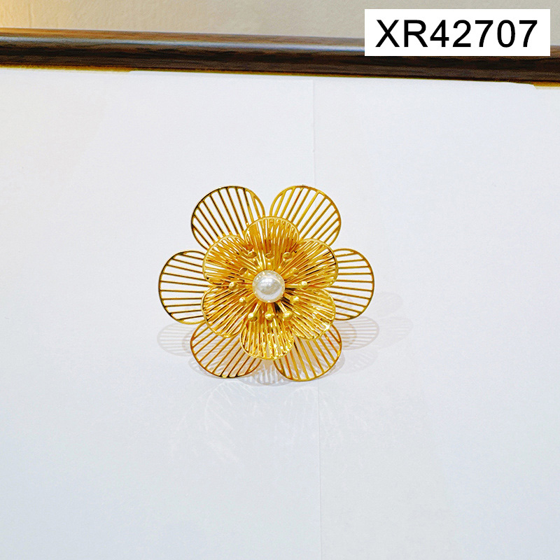 Level B Stainless Steel New Trendy Women Jewelry Pearl Style/Plastic Beads Flower Golden Open Rings;Ring size can be adjusted freely