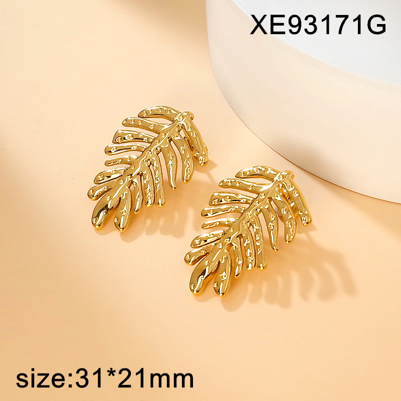 Level A Stainless Steel New Trendy Women Jewelry Leaf Golden Earrings