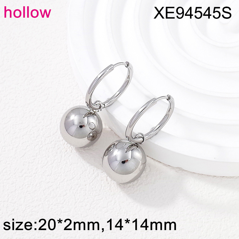 Home > Level A Stainless Steel New Trendy Women Jewelry Hollow Round Bead Steel color Hoop Earrings