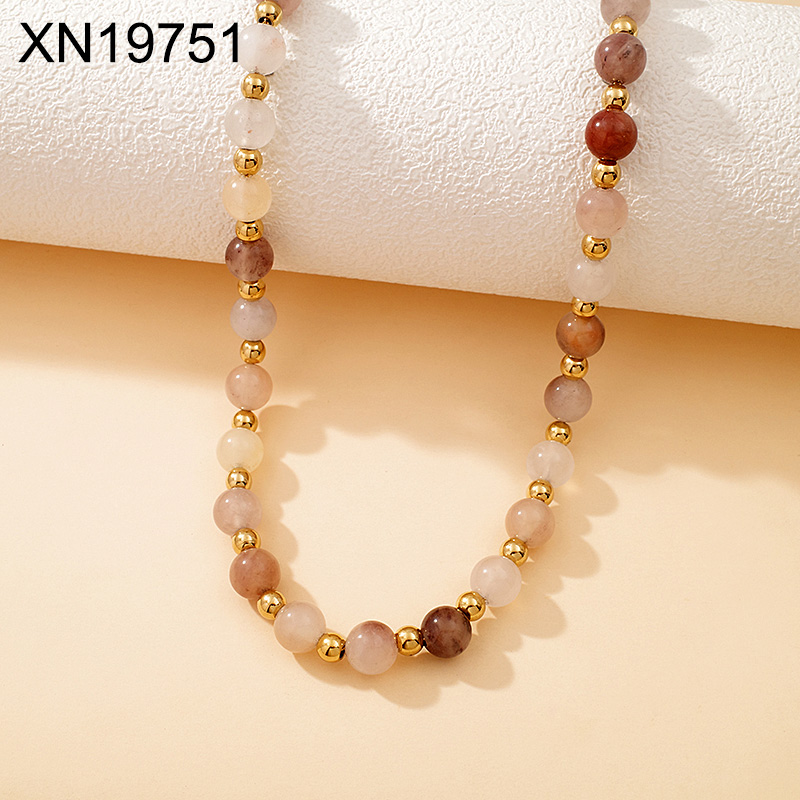 Level B Stainless Steel New Trendy Women Jewelry Natural Stone Golden Necklace