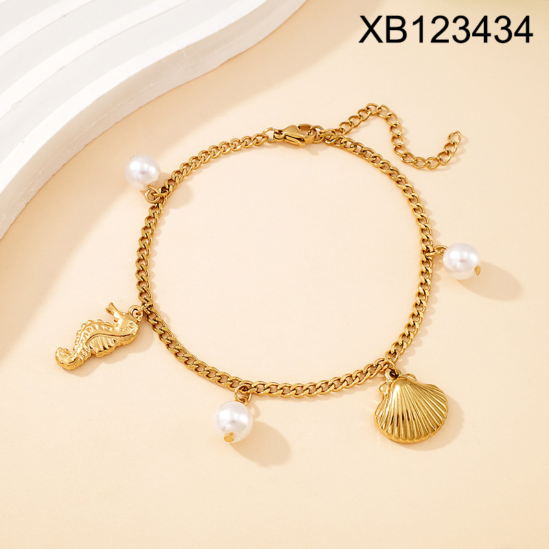 Level B Stainless Steel New Trendy Women Jewelry Summer beach Animal Seahorse Shell Golden Bracelet