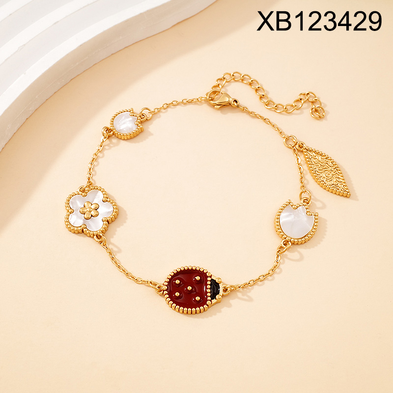 Home > Level B Stainless Steel New Trendy Women Jewelry Golden Animal Ladybug Flower Bracelet