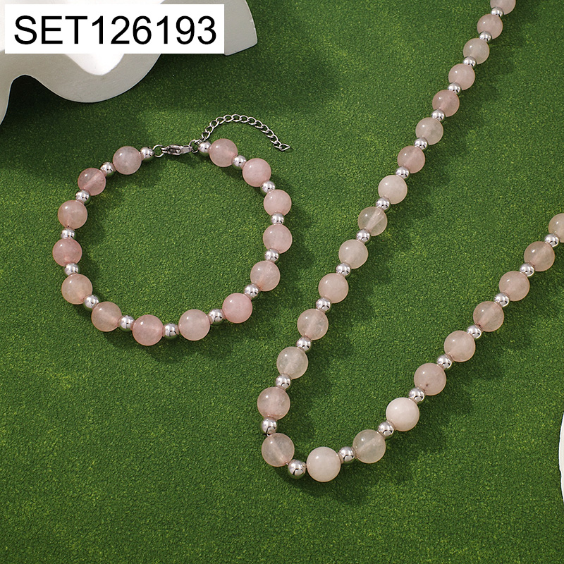 Home > Level B Stainless Steel New Trendy Women Jewelry Natural Stone Steel color Chain SET