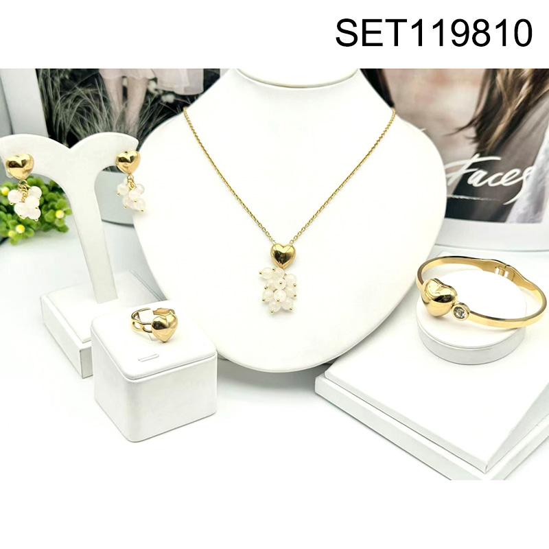 Level B Stainless Steel New Trendy Women Jewelry Golden 4pcs SET